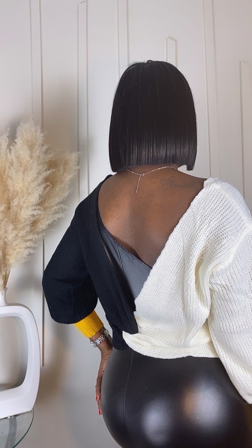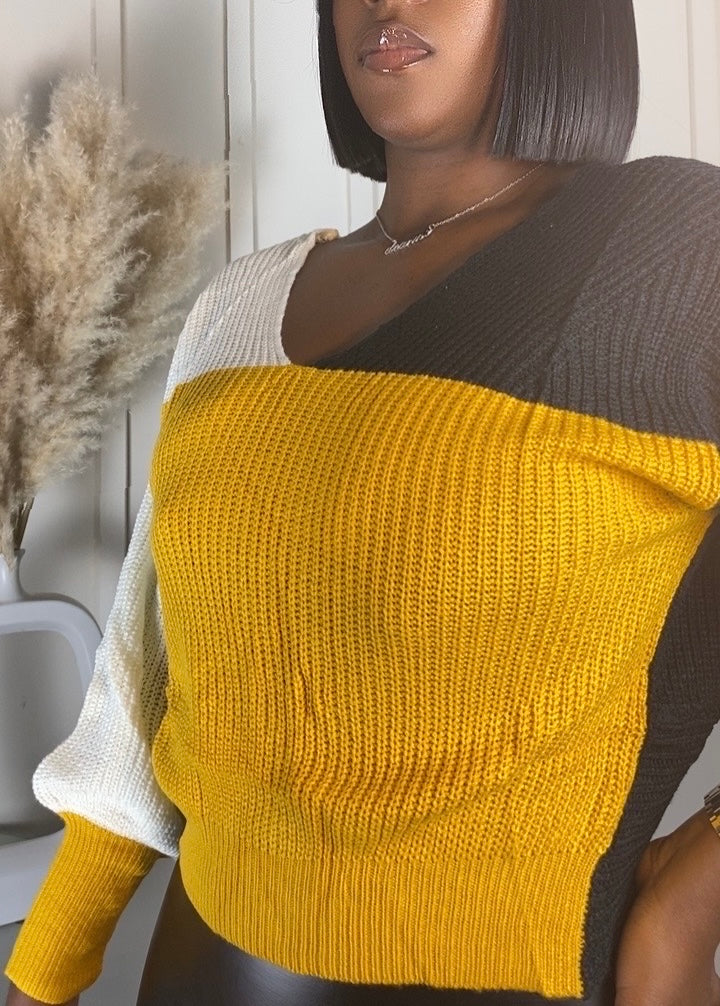 Unleash your style with the Not So Basic Knitted Top! This color block top adds a pop of personality to any outfit. Made with high-quality knitted fabric, it's a must-have for comfort and style. (Fashionable, comfortable, and fun. Not So Basic, indeed!)